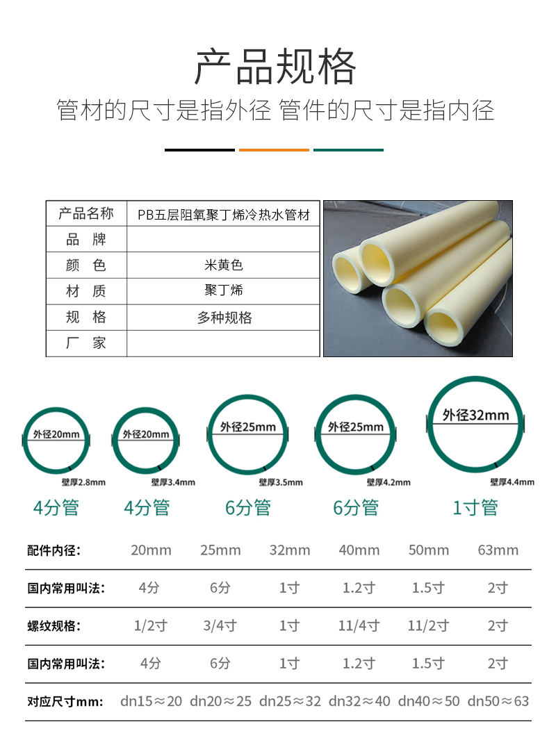 產品材質: 聚丁烯(PB)